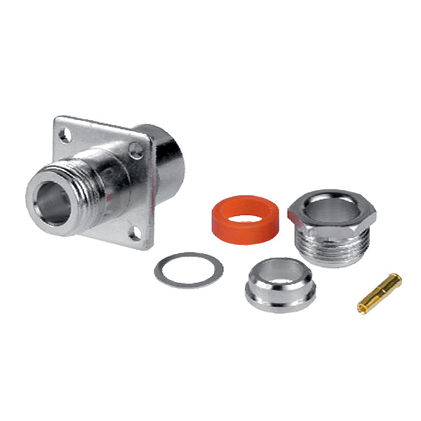 Прижимной ВЧ коаксиальный разъем N-типа femail (2,4 mm pin), приборно-кабельный с фланцем.