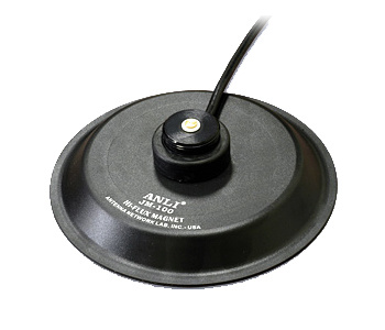 Anli JM-100NMO Крепление предназначено для автомобильных антенн с NMO разъемом. Несмотря на сравнительно небольшой размер магнита (145 мм), крепление способно удерживать легкие антенны длиной до 1.3 м при значительных ветровых нагрузках. Корпус крепления изготовлен из ударопрочного ABS, стойкого к воздействию окружающей среды. Антенный разъем водонепроницаем.