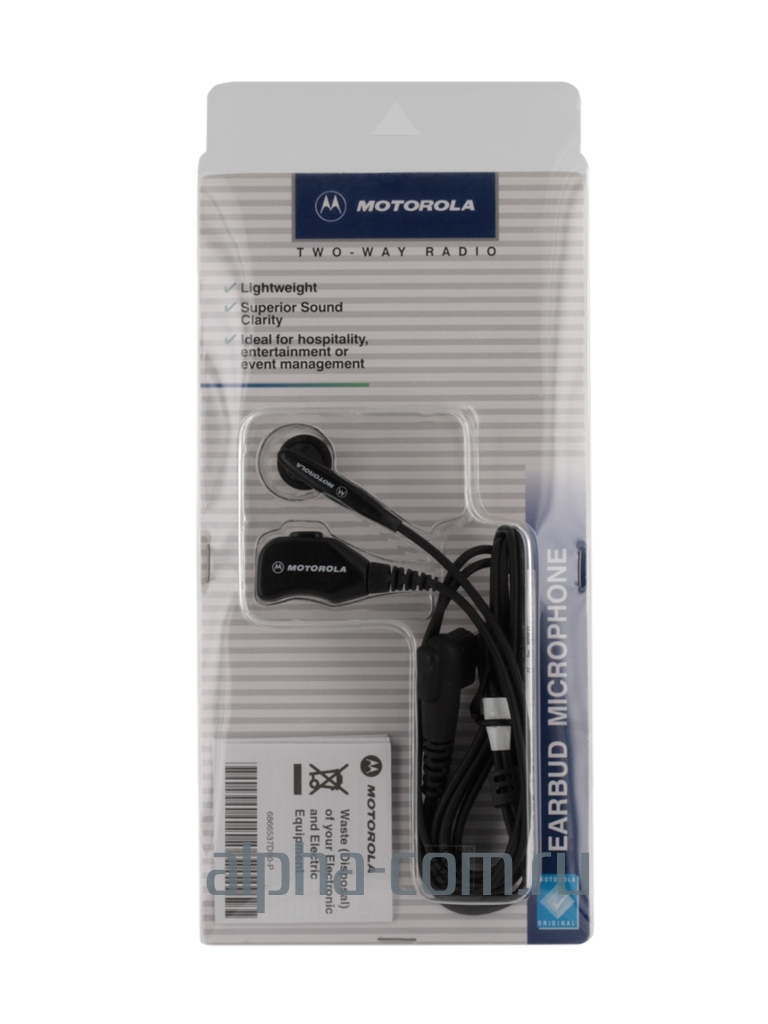 Motorola PMLN4294 - Гарнитура двухпроводная с микрофоном и кнопкой PTT на шнуре для радиостанций Motorola. Гарнитура PMLN4294 может быть модифицирована в скрытоносимую при помощи акустической трубки PMLN4605, что и представлено в двухпроводной гарнитуре скрытого ношения MDPMLN4606