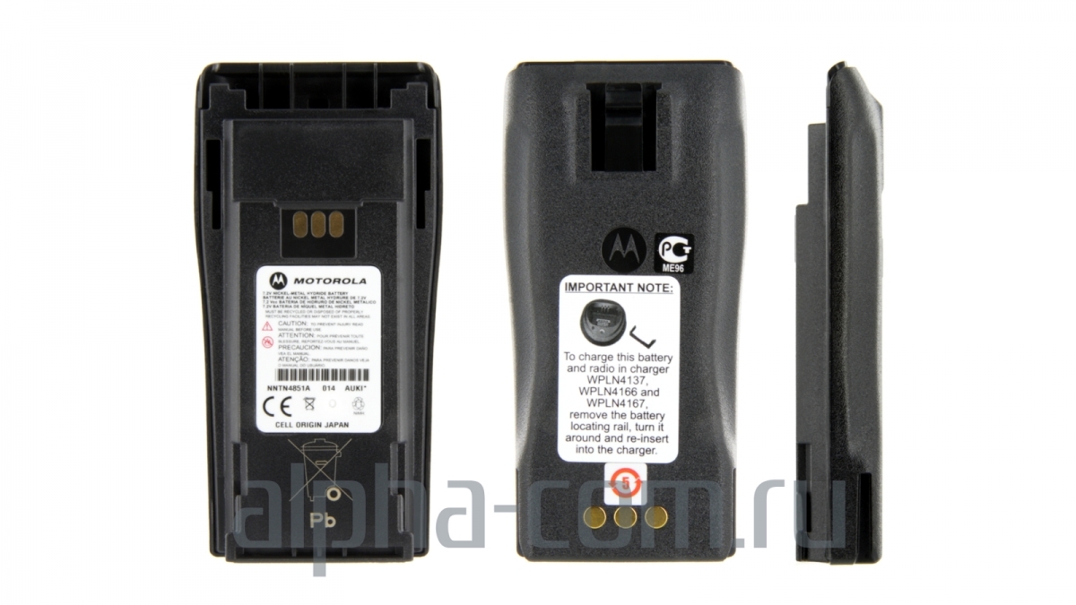 Motorola NNTN4851 - аккумулятор для цифровых радиостанций Motorola DP1400, аналоговых CP040 и остальной серии CP-Commercial. Аккумулятор NNTN4851 стандартно поставляется с радиостанциями Motorola коммерческой серии CP-Commercial и получил наибольшее распространение у пользователей этой серии. Аккумулятор Моторола NNTN4851 имеет ряд оригинальных аналогов различной емкости и химических типов, пригодных для обеспечения работоспособности радиостанций практических в любых температурных условиях окружающей среды.