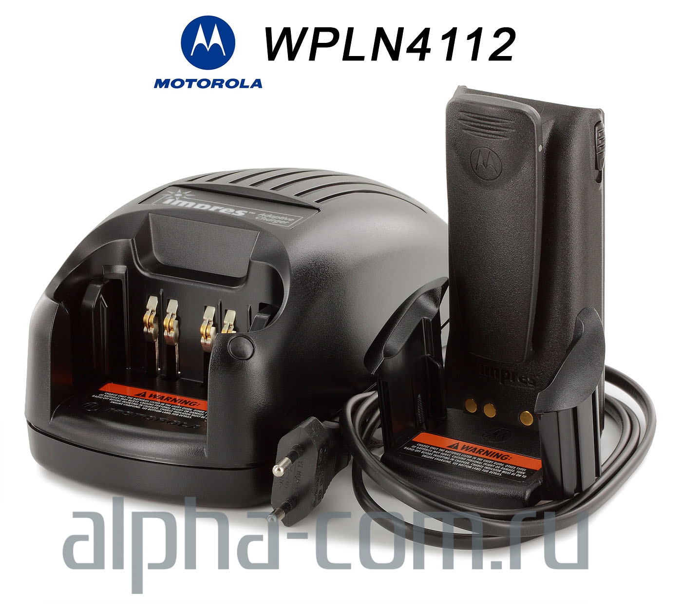 Motorola WPLN4112 быстрое, интеллектуальное Impres зарядное устройство для радиостанций Motorola GP-Professional (Waris). Зарядное устройство Motorola WPLN4112 оснащено встроенным блоком питания и предназначено для зарядки, восстановления и автоматического обслуживания аккумуляторов произведенных по технологии Impres, но так же может использоваться для зарядки стандартных аккумуляторов радиостанций платформы Waris.