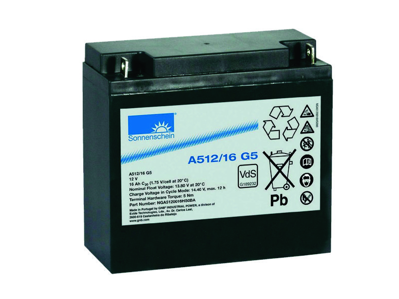 Sonnenschein A512/16 G5 -произведена по технологии dryfit (гелеобразный электролит),стационарная, свинцово-кислотная, герметизированная, необслуживаемая. Отличная герметичность позволяет аккумулятору работать при сильных кренах и в горизонтальном положении, без утечки электролита. Аккумуляторы Sonnenschein серии А500 используются в различных областях: источники бесперебойного питания (UPS), системы безопасности и сигнализации, связь и телекоммуникация, транспорт, медицинское оборудование и т.д.