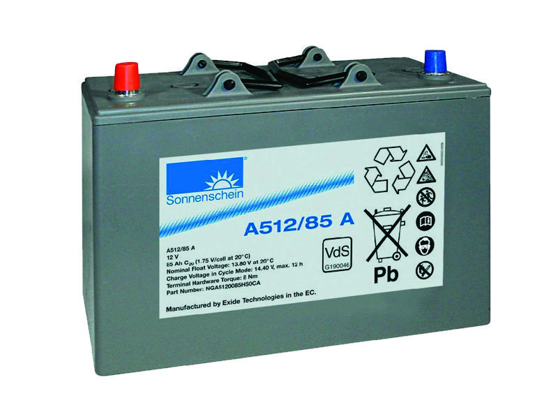 Sonnenschein A512/85 A -произведена по технологии dryfit (гелеобразный электролит),стационарная, свинцово-кислотная, герметизированная, необслуживаемая. Отличная герметичность позволяет аккумулятору работать при сильных кренах и в горизонтальном положении, без утечки электролита. Аккумуляторы Sonnenschein серии А500 используются в различных областях: источники бесперебойного питания (UPS), системы безопасности и сигнализации, связь и телекоммуникация, транспорт, медицинское оборудование и т.д.