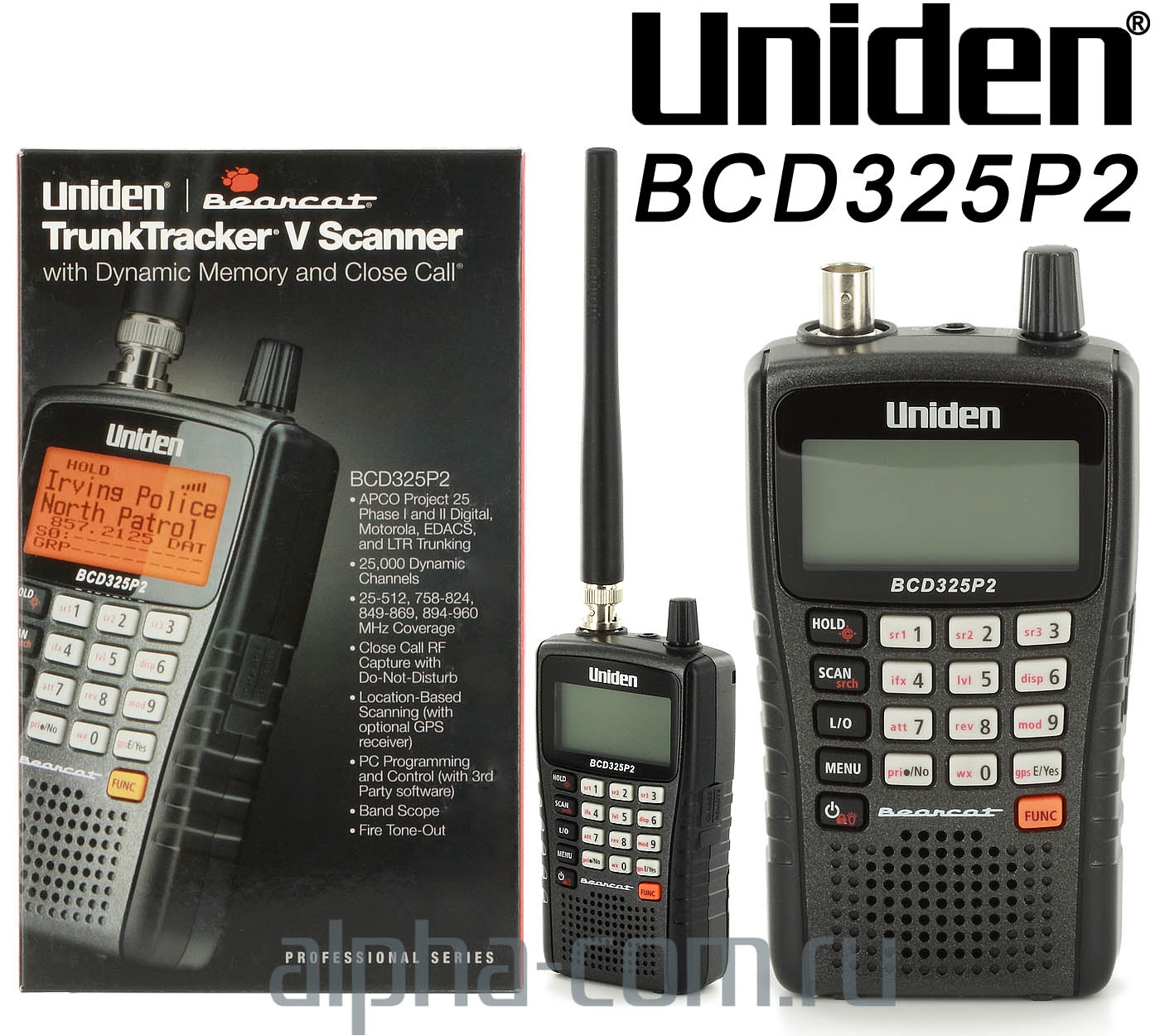 Uniden BCD325P2 Компактный, высокоскоростной транкинговый сканирующий приемник профессионального уровня с функцией декодирования цифровых сигналов стандарта APCO25 Phase 1, 2. Приемник предназначен, как для стандартного радиомониторинга, так и для приема радиопереговоров ведущихся в транкинговых сетях связи, таких как например APCO P25 Phase 1, Phase 2, X2-TDMA, Motorola, EDACS и LTR.
