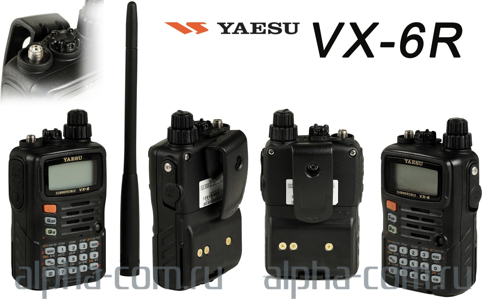 Yaesu VX-6R - водонепроницаемая двухдиапазонная радиолюбительская радиостанция с широким диапазоном приема в ударопрочном обрезиненном корпусе повышенного класса защиты от вибро-ударных и климатических воздействий в соответствии со стандартами MIL-CTD-810 C/D/E и IP-x7.